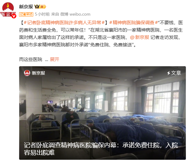 更值得警惕的是,投资精神病院已经成了一些人的“热门生意”。租个偏僻的房子,招几个医护人员,设施简陋、成本极低,却能靠套保赚得盆满钵满。他们把精神病院变成了养老院、福利院,把病人当成赚钱工具,彻底抛弃了医疗的底线与良知。