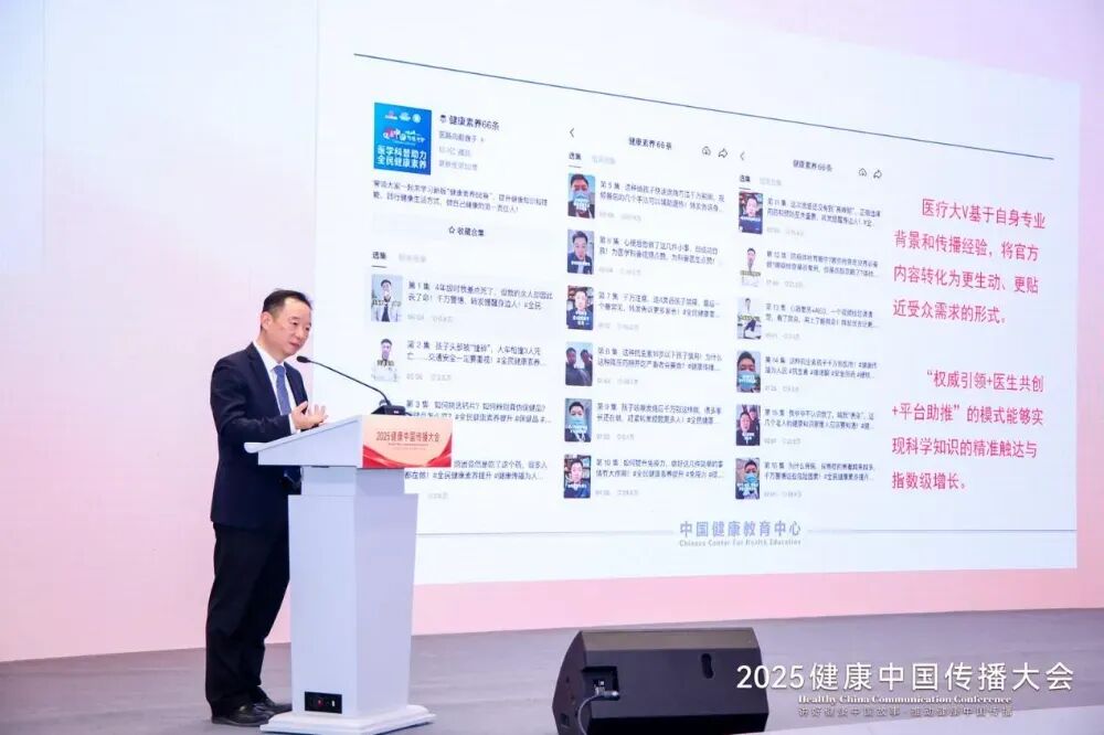 吴敬副主任(主持工作)在《健康素养66条工作成果展示》演讲中,系统阐释了健康素养作为衡量国民健康核心指标的战略意义,并展示了围绕《健康素养66条》取得的突破性传播成果。通过构建“权威引领、医生共创、平台助推”的全媒体传播体系,相关科普内容累计触达超29亿人次,实现了健康知识从“听得到”到“听得懂、听得进”的深刻转变,为夯实健康中国建设的社会基础提供了关键支撑。