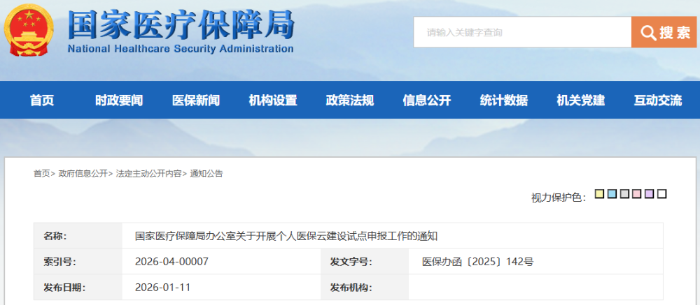 1月11日,国家医疗保障局启动“个人医保云”建设试点申报,试点期为2026年2月至12月。试点基于全国统一医保信息平台,汇聚诊疗结算、可穿戴设备等院内院外数据,构建含健康、财务、信息档案的动态医保画像,提供就医结算、健康管理等智能化服务,同时筑牢数据全生命周期安全防线,探索智慧医保新范式。(来源:国家医保局)