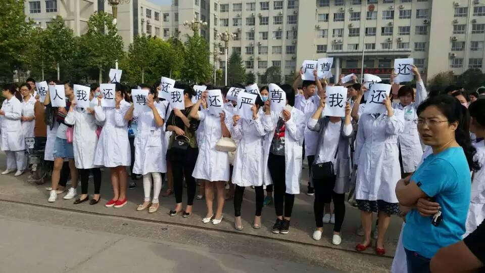 图:周口医闹事件后,当地医护表示抗议(图源:中青网)