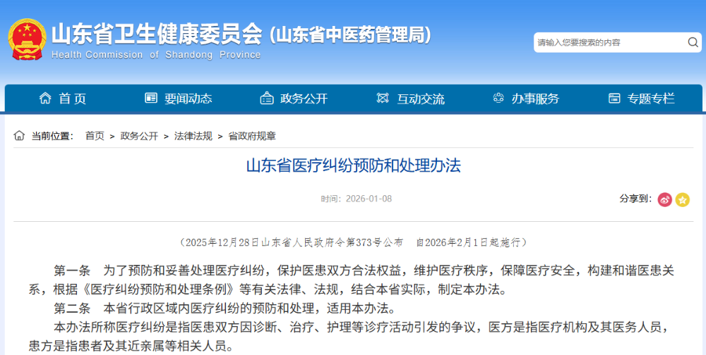 2025年12月28日,山东省人民政府出台《医疗纠纷预防和处理办法》(简称山东《办法》),在多个关键点上实现了实质性突破。