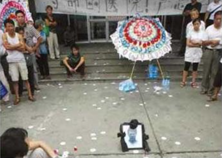例如2022年,在河北廊坊市霸州市人民医院开发区分院的案例:患者死亡后,家属怀疑医疗事故,在调查尚未完成前,将水晶棺抬入医院大厅,设灵堂、焚烧纸钱,并在网络平台持续发布指控内容。随后公布的调查结果显示,医疗行为并不存在违规。